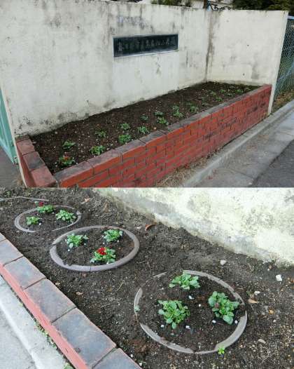 学校の窓 『 春に向けて 』 公開日 2017/01/21 更新日 2017/01/21 学校の窓 正門と体育館前の花壇のようすです。3月16日の卒業式や4月の入学式・始業式に向けて、春咲きの花の苗を植えました。