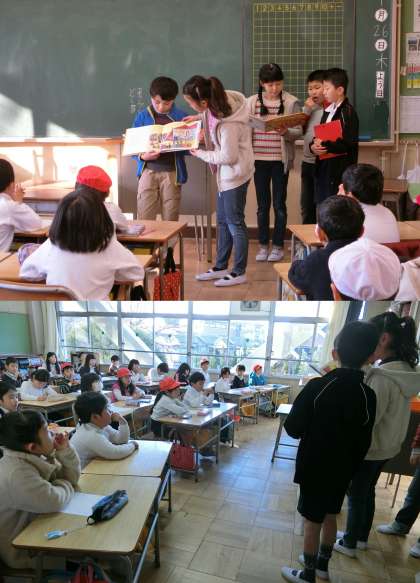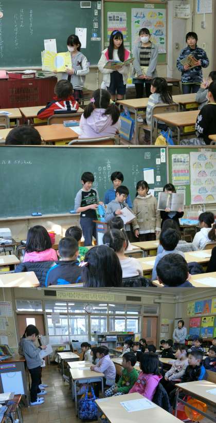 1月26日(木)、サザンカ読書週間3日目は、図書委員による読み聞かせを行いました。1・2年生の教室に図書委員が出かけて、一生懸命読み聞かせをしました。図書委員会のみなさん、ご苦労さまでした。