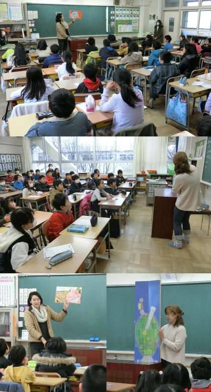 1月30日(月)、今日は、4年生が「わくわく絵本の会」の方に本を読んでもらいました。1メートルをこえる大きな本に見入っていました。