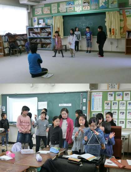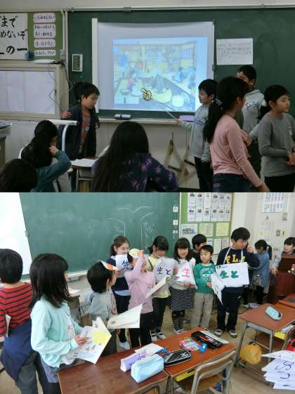 2月1日 学習発表会に向けて 3年生 公開日 2017/02/01 更新日 2017/02/01 3年生 2月1日(水)、学習発表会に向けた、3年生の練習のようすです。科目に分かれて、発表練習をしていました。