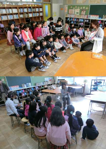 2月3日(金)、2時間目後の放課に、わくわく絵本の会の方から「わくわく広場」で読み聞かせをしていただきました。たくさんの子どもたちが、熱心にお話を聞いていました。ありがとうございました。