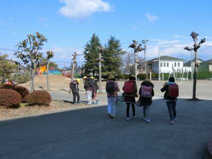 4年1組、給食後に下校しました。