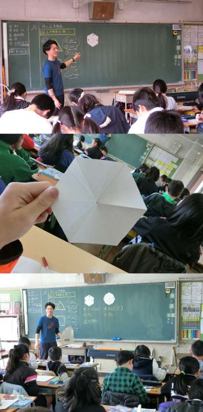 2月6日(月)、5年生の算数授業のようすです。『円と正多角形』の単元で、円周を等しく分けて正六角形を作った学習をもとに、正八角形の作り方を話し合っていました。