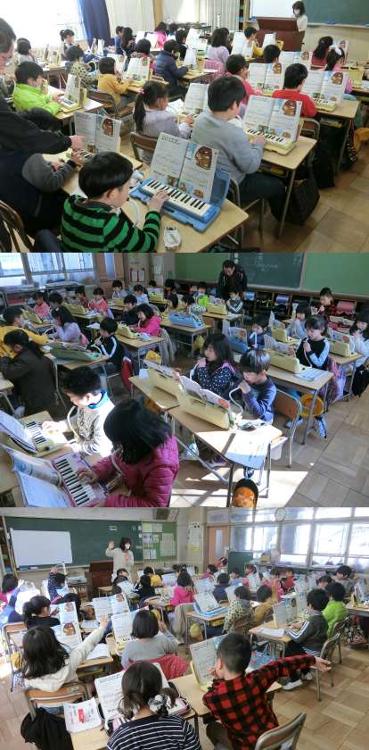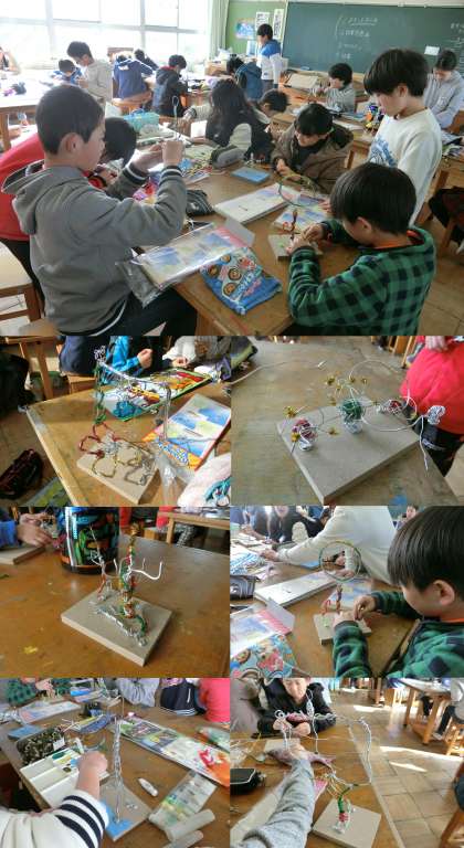 2月7日 今日の授業から 2・5年生 公開日 2017/02/07 更新日 2017/02/07 4年生 2月7日(火)、2年生の音楽、5年生の体育と図画工作授業のようすです。2年生は、鍵盤ハーモニカの合奏曲『こぐまの二月』に取り組んでいました。5年生の体育は、ラインサーカーのゲームをしていました。図画工作は、針金とモールを使った『立ち上がれマイライン』に取り組んでいました。