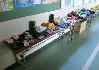 学習発表会にあわせて、南館の昇降口前の廊下に「落とし物」を展示します。手袋の落とし物が多く見られます。心当たりがある人は、確かめてください。保護者の方も、来校の際にご覧ください。