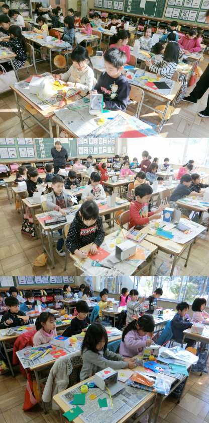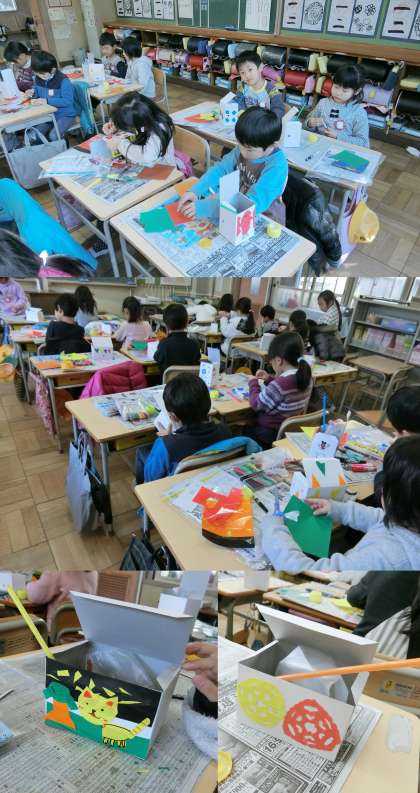 2月15日 今日の授業から 1・3年生 公開日 2017/02/15 更新日 2017/02/15 1年生 2月15日(水)、1年生の図画工作、3年生の体育授業のようすです。1年生は、『なにが でてくるかな!?』の単元で、息を吹き込むと膨らむポリ袋の特長を生かした仕組みを使った楽しいおもちゃ作りに取り組んでいました。3年生は、体づくりの運動に取り組んでいました。