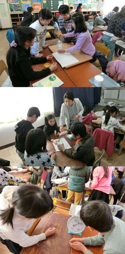 2月16日 今日の授業から 2・3・4年生 公開日 2017/02/16 更新日 2017/02/16 3年生 2月16日(木)、2年生の体育、3年生の理科、4年生の社会科授業のようすです。2年生は、目標を決めてサッカーボールをける練習をしていました。3年生は、『物の重さをくらべよう』の単元で、体積が同じでも物によって重さがちがうか、砂糖と塩を使って調べていました。4年生は、愛知県の学習で、県内の市町村の特長を調べていました。