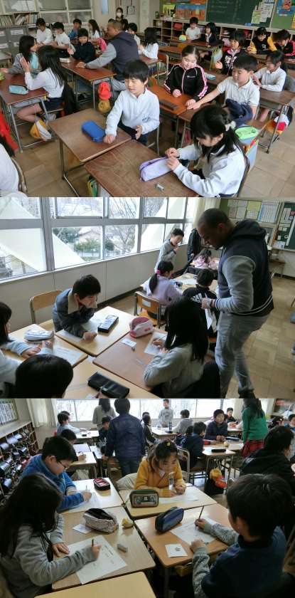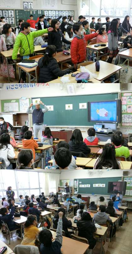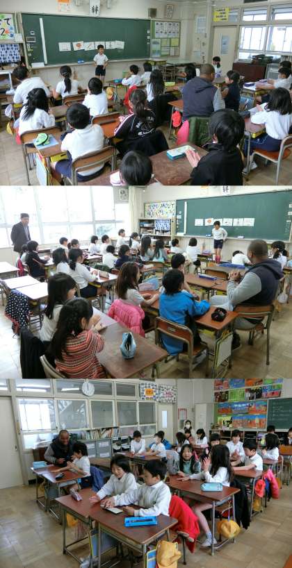 2月20日 クレイグ先生といっしょに 公開日 2017/02/20 更新日 2017/02/20 3年生 2月20日(月)、3年生と4年生の外国語活動のようすです。3年生は、なわとび・グローブ・バット・ラケット・一輪車・トランプなど、ものの名前の言い方を覚えていました。4年生は、ゲームをしながら日曜から土曜日までの言い方を学んでいました。