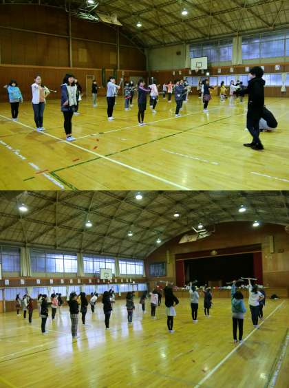 2月20日(月)、バトン部のようすです。3月11日(土)に行う『鼓笛・バトン 春の合同発表会』に向けて、体育館で練習をしていました。