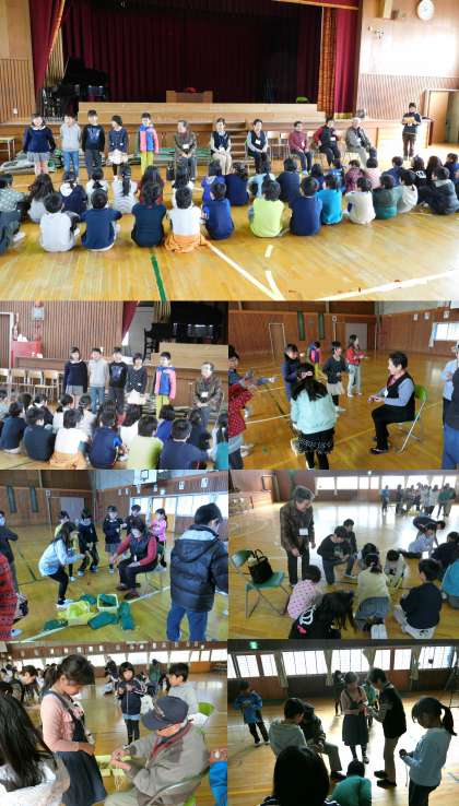 3時間目は、体育館で昔の遊びを教えていただきました。めんこ、あやとり、けん玉、こま、お手玉をしました。新しい技を教わったり、遊び方のポイントを聞いたりして、楽しむことができました。