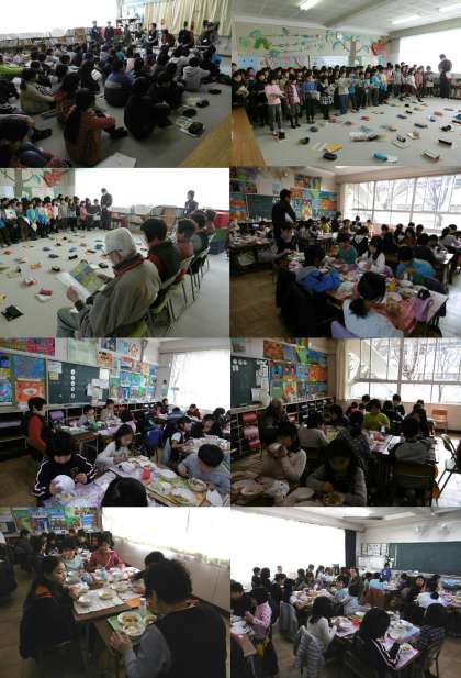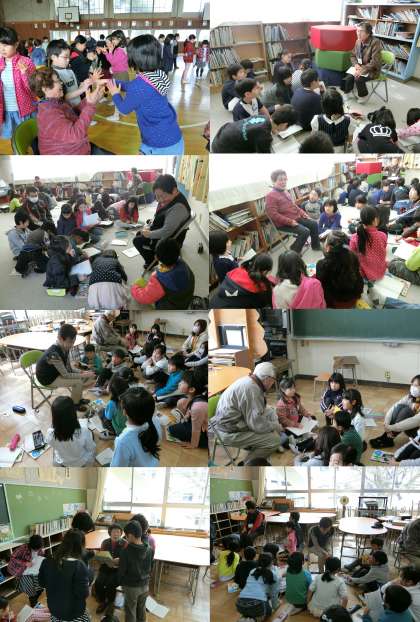 4時間目は教室へ移動して、喜楽会の方を囲んで、グループ別に昔の話を聞きました。戦争中の生活や学校生活について話を聞き、ノートにメモを取りました。「子どものころは給食も放課もなかったんだよ。」という話を聞いて、子どもだちはとても驚いていました。