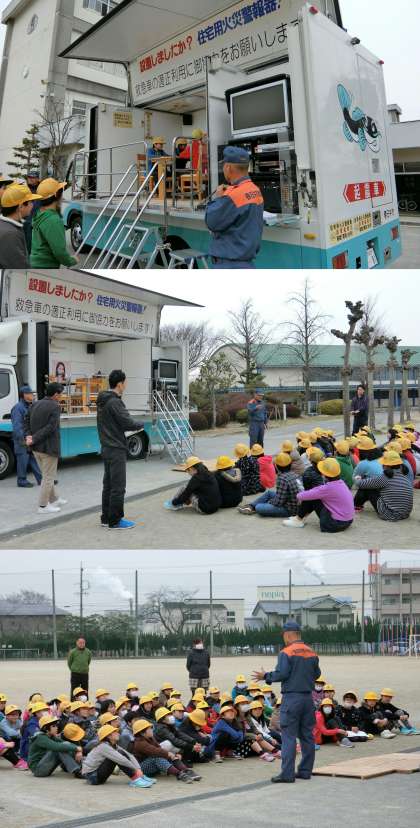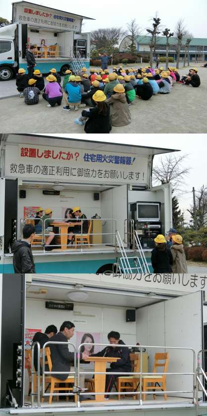 3月6日(月)、5年生が、グラッキー(起震車)の体験をしました。5年生は、総合的な学習の時間に防災について調べています。今日は、東南海地震が起こると春日井市内で想定される震度5強の揺れを体験しました。担任の先生は、阪神淡路大震災や東日本大震災で観測された震度7を体験しました。グラッキーでの体験の後、消防署の方から話を聞きました。身を守る方法、家庭に備えておくもの、避難する場合の家族の集合場所の確認など、大きな地震への備えについて、話していただきました。