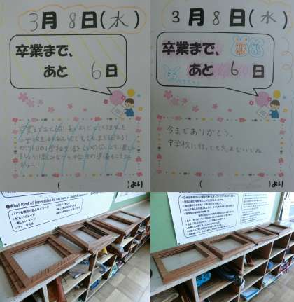 3月8日(水)、卒業まで『ラスト6日』です。卒業式の会場に飾る色紙の枠が出来上がってきました。