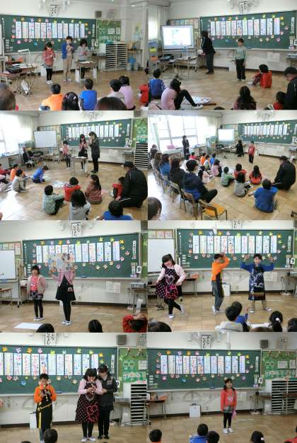 3月9日(木)、かえで・もみじ・いちょう学級が、ミニ発表会を行いました。合奏や全員合唱、交流学級の学習発表会で取り組んだことを、みんなで発表しました。