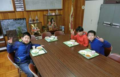 3月10日(金)、インフルエンザで休んでいた6年2組の児童と会食をしました。古い卒業アルバムを見ながら、築山にあったターザンロープや昭和37年(1962)にできた現在の校歌の話をしました。