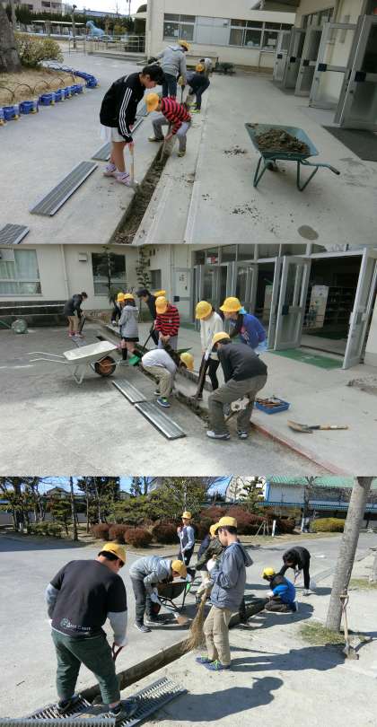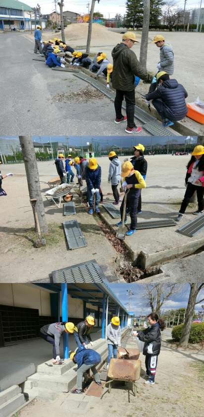 今年の6年生は、昇降口前・体育館前・運動場の側溝掃除、校内の石拾い、フェンス沿いの落ち葉掃除をしました。6年生のみなさん、本当にありがとうございました。