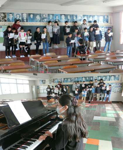 3月14日(火)、卒業まで『ラスト3日』です。音楽室で、卒業式の歌の練習をしていました。