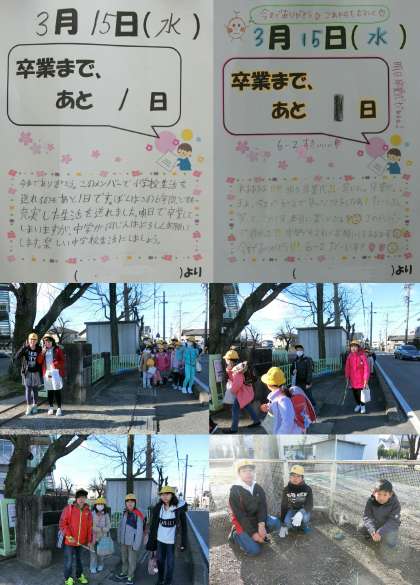 3月15日(水)、いよいよ卒業式まであと「1日」となりました。鳥居松小学校に通うのも、明日の卒業式で最後です。下級生と登校するのも飼育当番も、今日が最後でした。