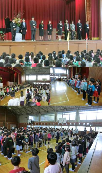 4月7日(金)、新しく鳥居松小学校に赴任された11名の先生方をお迎えする着任式を行った後、29年度の始業式を行いました。新1年生72名、転入生7名を迎え、408名で本年度をスタートしました。