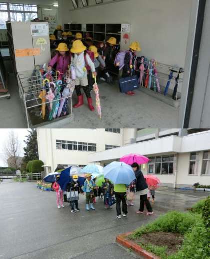 4月11日(火)、1年生の動物下校が始まりました。給食が始まらない1年生は、今日から1年生だけで方面別に下校をします。雨の中、学校や通学路の途中までお迎えいただいた保護者の皆様、ありがとうございました。給食が始まる18日(火)までよろしくお願いします。