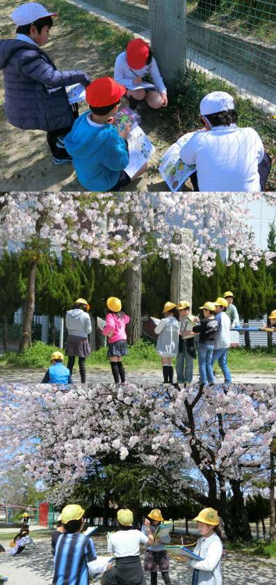 4月13日(木)、4年生の理科、5年生の算数、3・5年生の体育授業のようすです。4年生は、「春になったら」の単元で、春さがしをしていました。5年生は、小数を10倍、100倍、100倍する計算のしくみを考えていました。体育は、並び方や体ほぐしの運動に取り組んでいました。