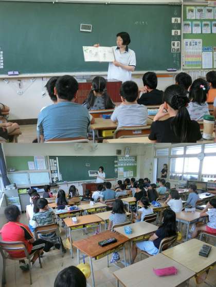 6月6日(火)、今日は、4年生の2クラスが「わくわく絵本の会」の方に本を読んでもらいました。