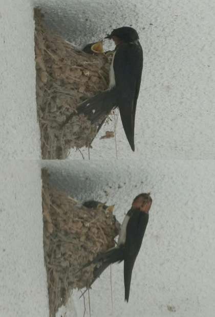 南館昇降口にあるツバメの巣のようすです。2匹のヒナを見ることができました。エサを運んでくる親鳥が近づくと、黄色い口を大きく開けて鳴いていました。