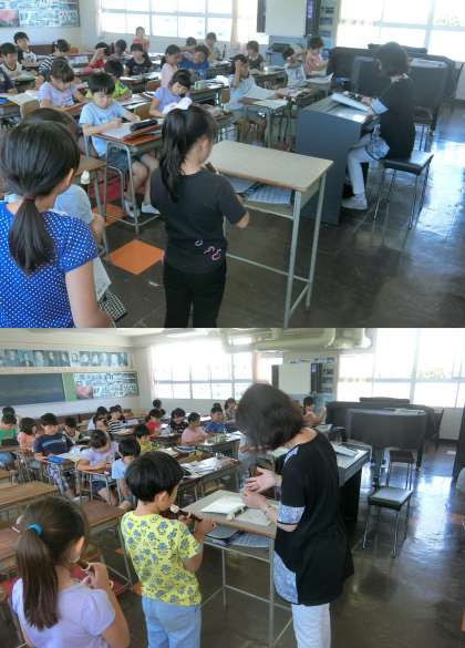 6月14日(水)、2年生の図画工作と体育、3年生の音楽授業のようすです。2年生の図画工作は、『ふしぎなたまご』の作品作りを始めていました。体育は、運動場でおにごっこをしていました。3年生は、リコーダーのテストに取り組んでいました。