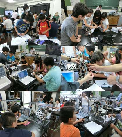 7月8日(土)に行う今年度第4回のふれあい教育セミナーの参加者を募集しています。第4回ふれあい教育セミナーは、昨年に続いて、4・5・6年生を対象として、『二足歩行ロボット教室』を開催します。自分でロボットを作り、プログラムを組んで思ったように動かすことができます。4・5・6年生児童のみ、または4・5・6年生と保護者の方による2〜3名のグループで参加してください。詳しい内容は、配布文書をご覧ください。どんなことをするのか、どうやって作るか等詳しくは、『「二足歩行ロボット教室」製作マニュアル』をご覧ください。