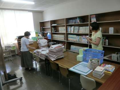 来週6月26日(月)に行う図書館の本のカバーかけに向けて、わくわく絵本の会とPTAの方に準備を進めていただきました。PTA事業部、わくわく絵本の会、ボランティアのみなさん、よろしくお願いします。
