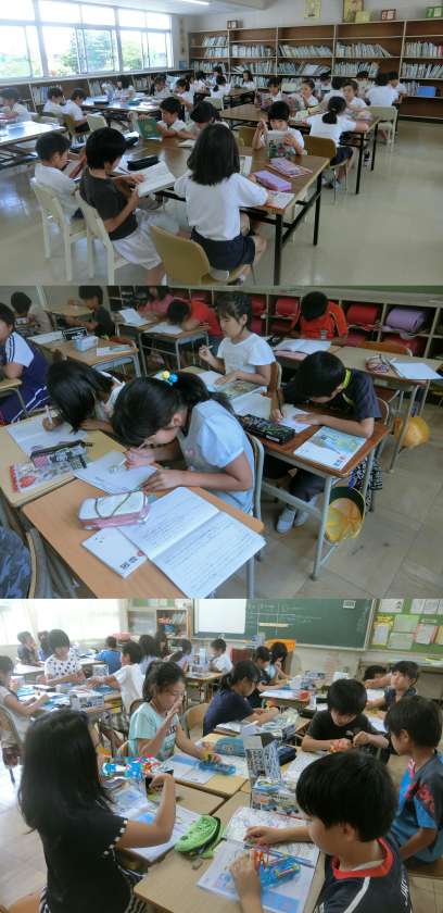 6月23日(金)、1年生の体育、4年生の国語と理科、5年生の社会科授業のようすです。