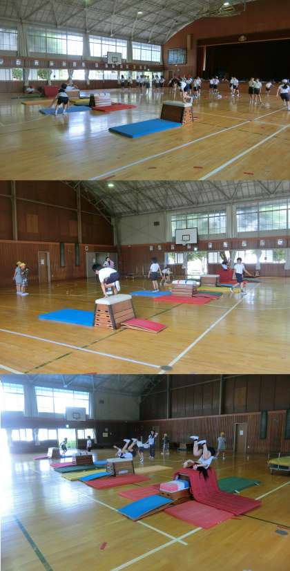 7月3日(月)、2年生の道徳、5年生の体育授業のようすです。2年生は、「郷土愛」について話し合っていました。5年生は、跳び箱の閉脚跳びと台上前転に取り組んでいました。