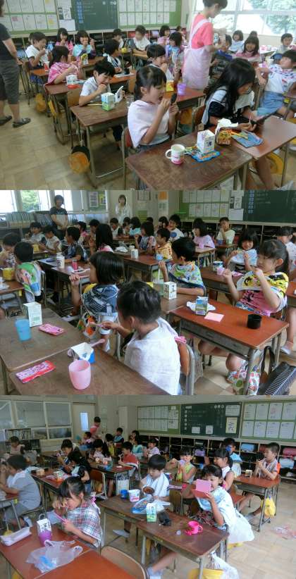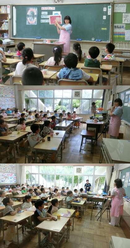 7月5日 歯みがき指導 1・2・3年生 公開日 2017/07/05 更新日 2017/07/05 2年生 7月5日(水)、1〜3年生が、歯科衛生士の方に歯みがき指導をしていただきました。鏡を使って自分の歯がどれくらい成長しているか見たり、正しい歯みがきの仕方を教えてもらったりしていました。3年生は、染め出し剤を歯に塗って、磨き残しを調べました。今日教えてもらったみがき方や食べものの食べ方を、毎日心がけてください。