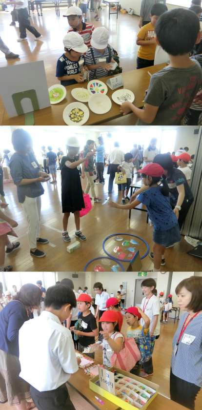 7月6日(木)、レディヤンで、ブロック交流会を行いました。柏原中校区の鳥居松小・柏原小・丸田小・柏原中の4小中学校の特別支援学級の児童生徒が集まり、各小中学校ごとに発表したりお店屋さんで買い物を楽しんだりして交流しました。鳥居松小のかえで・もみじ・いちょう学級の子どもたちは、自己紹介とお店番を元気よく行うことができました。手作りの作品を買ったりゲームを楽しんだりしました。