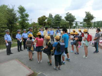 7月12日(水)、昨日から始まった夏の交通安全県民運動の交通安全キャンペーンに、鳥居松小学校の生活安全委員が参加しました。春日井警察署・市交通対策課・交通指導員の方々といっしょに校区内のお年寄りをたずね、交通安全を呼びかけました。