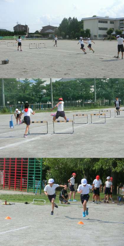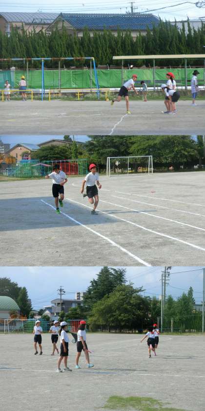 7月14日(金)、陸上部の練習のようすです。種目別に練習を行った後に、リレーのバトンパス練習をしました。