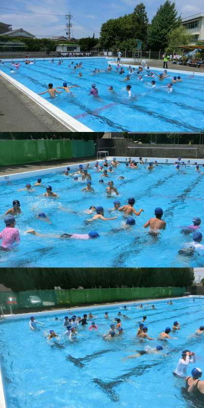 7月18日 2・5・6年生、プールに入りました。 公開日 2017/07/18 更新日 2017/07/18 5年生 7月18日(火)、2・5・6年生の水泳指導のようすです。今日の名古屋地方気象台の最高気温は34.1度で、プールの中はとても気持ちよさそうでした。