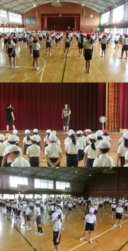 9月5日(火)、3・4年生の運動会練習が始まりました。3・4年生で「どっこいせ」を踊ります。今日は、体育館で踊りの動きを一つずつおぼえていました。