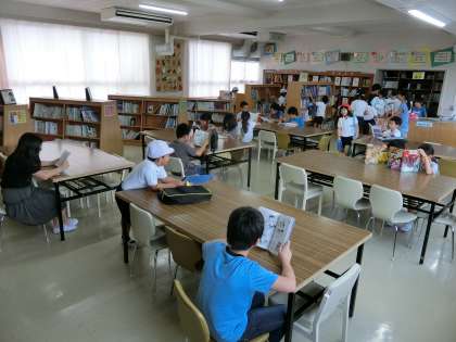 9月11日(月)、今日から図書館の貸し出しが始まりました。さっそく本を借りている子どもたちがいました。