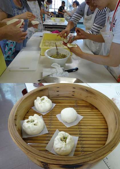 生地をこねるところからはじめ、すべて手作りの、とてもおいしい肉まんができあがりました。