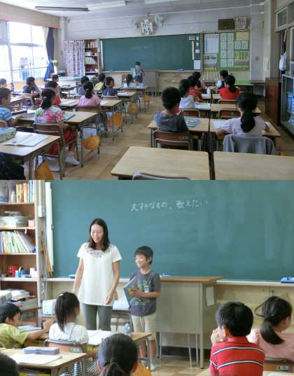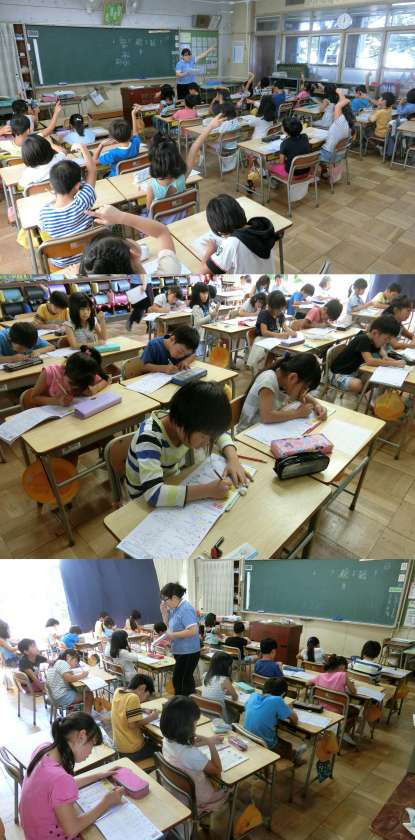 9月14日 今日の授業から 2年生、かえで・もみじ・いちょう学級 公開日 2017/09/14 更新日 2017/09/14 2年生 9月14日(木)、2年生の国語、かえで・もみじ・いちょう学級の道徳授業のようすです。2年生は、「つたえたいことを はっぴょうしよう」の単元で、『大すきなもの』をみんなに発表していました。となりのクラスでは、新出漢字の練習をしていました。かえで・もみじ・いちょう学級は、「よいこと わるいこと」の紙芝居を聞いて、正しいことをすることの大切さを考えました。
