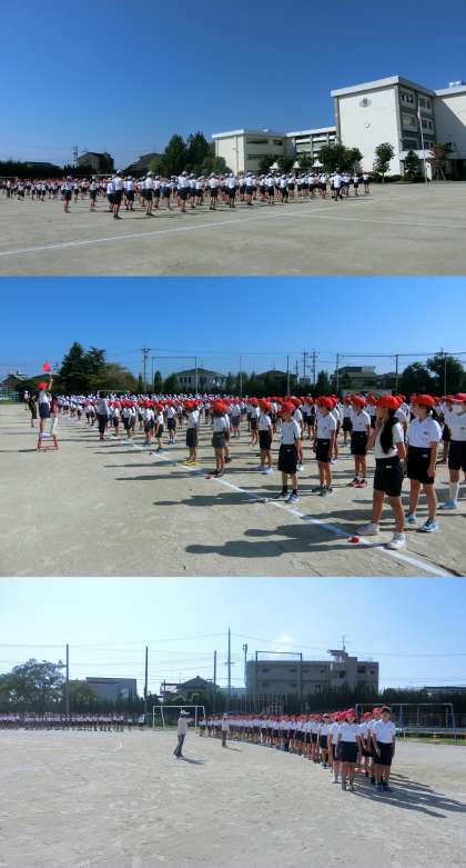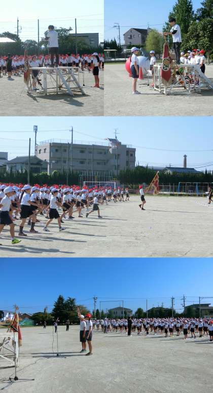 9月25日 全校練習 公開日 2017/09/25 更新日 2017/09/25 学校のできごと 9月25日(月)、運動会に向けて第2回の全校練習をしました。今日は、運動場で開会式と閉会式、大玉送りの練習をしました。練習を始める前に、運動会のプログラムの絵を描いた児童を表彰しました。