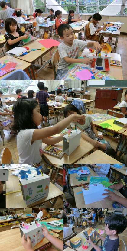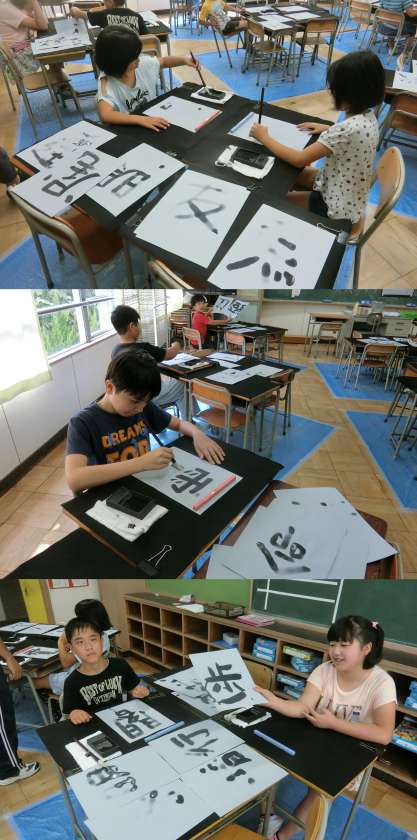 9月27日(水)、2年生の図画工作、かえで・もみじ・いちょう学級の書道科授業のようすです。2年生は、「ストローでこんにちは」の単元で、ストローを使って動くおもちゃを作っていました。かえで・もみじ・いちょう学級は、1月に行われる「けやきの子作品展」に出品する習字の漢字を考えていました。