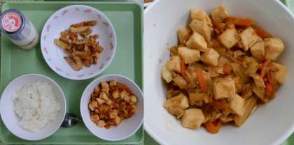 9月29日(金)、今日の給食献立は、「ごはん・牛乳・『マーボ豆腐』・フレンチポテトとナッツの揚げ物」でした。