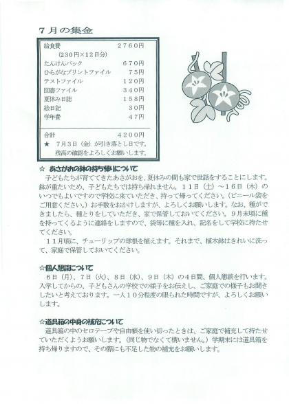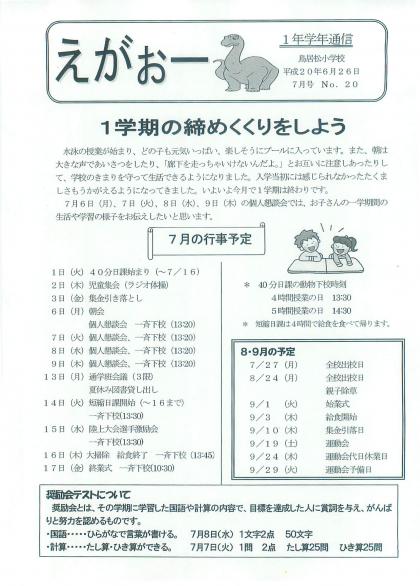 1年学年通信「えがぉー」7月号 NO・20です。