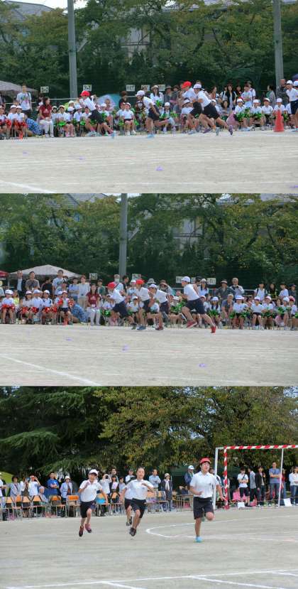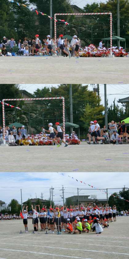 ラジオ体操、5年生短距離走、6年生短距離走のようすです。