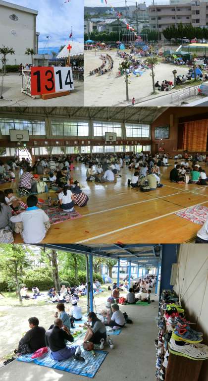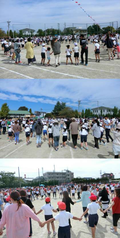 3・4年生の「どっこいせ」、「親子でおどろう−マイム・マイム−」、昼食のようすです。