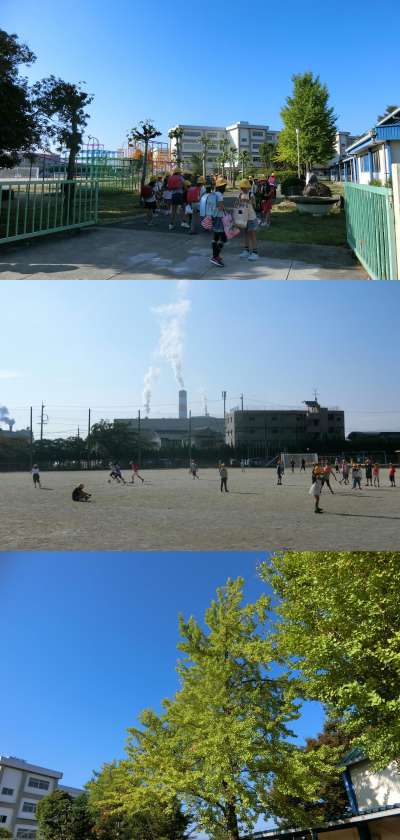 10月11日(水)、朝から青空が広がる暑い一日でした。名古屋地方気象台の最高気温は29.9度で、真夏日並みの気温でした。運動場では、朝から元気よく遊んでいました。