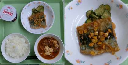 10月13日 今日の給食は、『さんまのかば焼風』