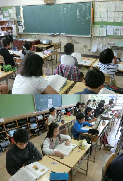 10月13日 今日の授業から 5・6年生、かえで・もみじ・いちょう学級 公開日 2017/10/14 更新日 2017/10/14 6年生 10月13日(金)、5年生の国語、6年生の家庭科、かえで・もみじ・いちょう学級の算数授業のようすです。5年生は、『大造じいさんとガン』の学習が始まりました。6年生は、修学旅行に持って行くナップザック作りに取り組んでいました。かえで・もみじ・いちょう学級は、それぞれの課題に取り組んでいました。